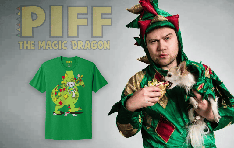 Alive Print Shop partnered with Piff the Magic Dragon to produce high-quality custom t-shirts for their merch booth. Our team handled everything from premium garment selection to vibrant screen printing, ensuring long-lasting color and a professional finish that stands out at every show. By delivering fast turnaround times, consistent quality, and reliable bulk merch production, we helped elevate their brand presence and create memorable, fan-favorite apparel for audiences nationwide.