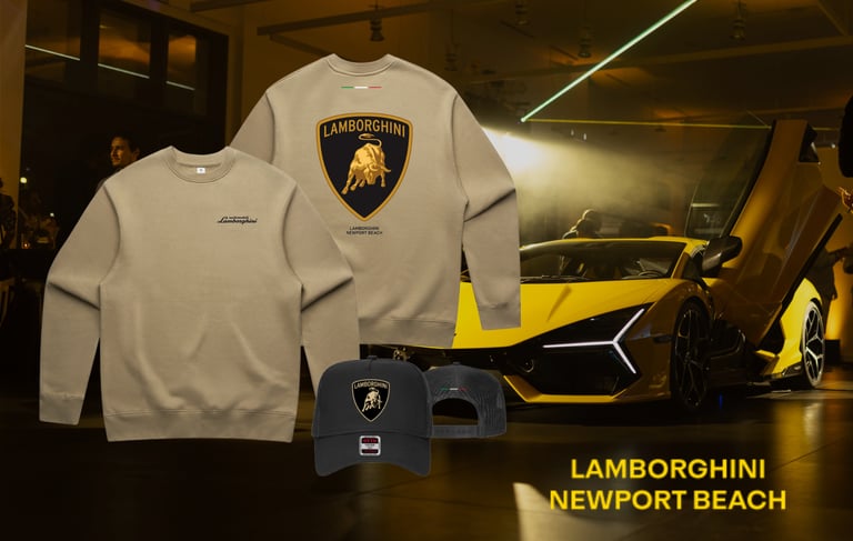 Alive Print Shop collaborates with Lamborghini Newport Beach to create premium branded merchandise for their boutique. We produce apparel that reflects the high-end aesthetic of the Lamborghini brand: clean prints, elevated materials, and precise detailing that resonate with automotive enthusiasts. By delivering consistent quality, dependable production, and smooth restocking support, we help their boutique offer exclusive merchandise that matches the luxury experience their customers expect.